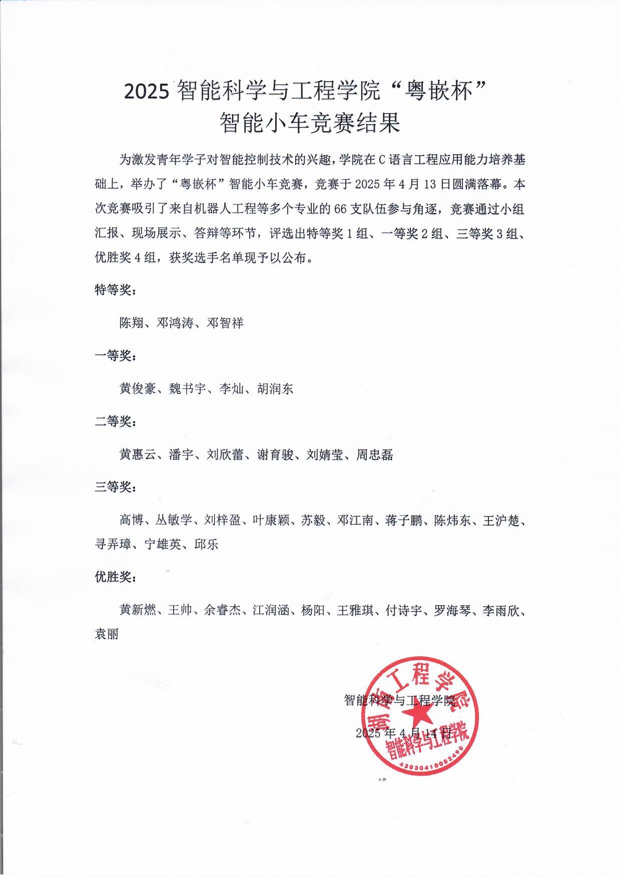 2025年365英国上市集团“粤嵌杯”智能小车竞赛获奖名单