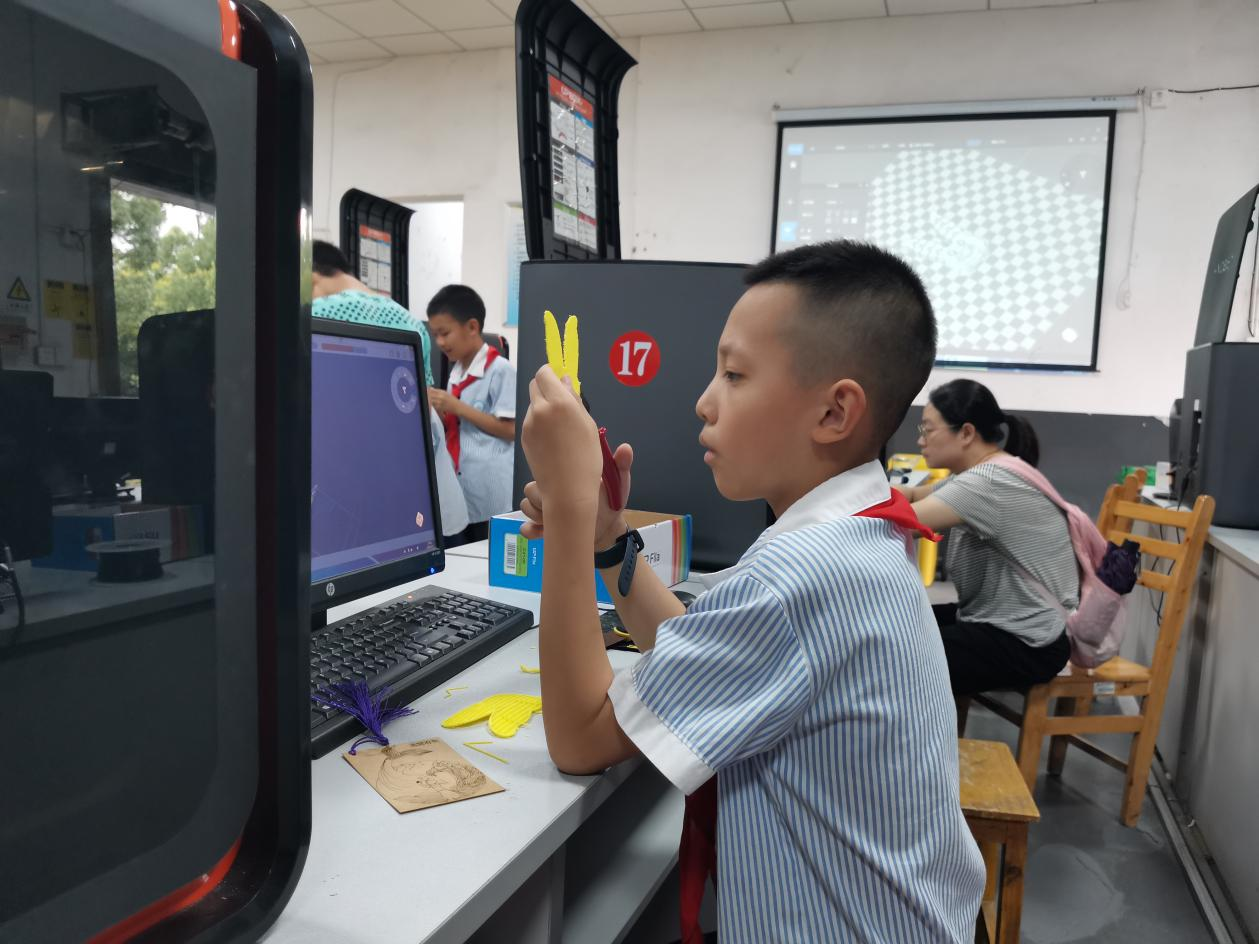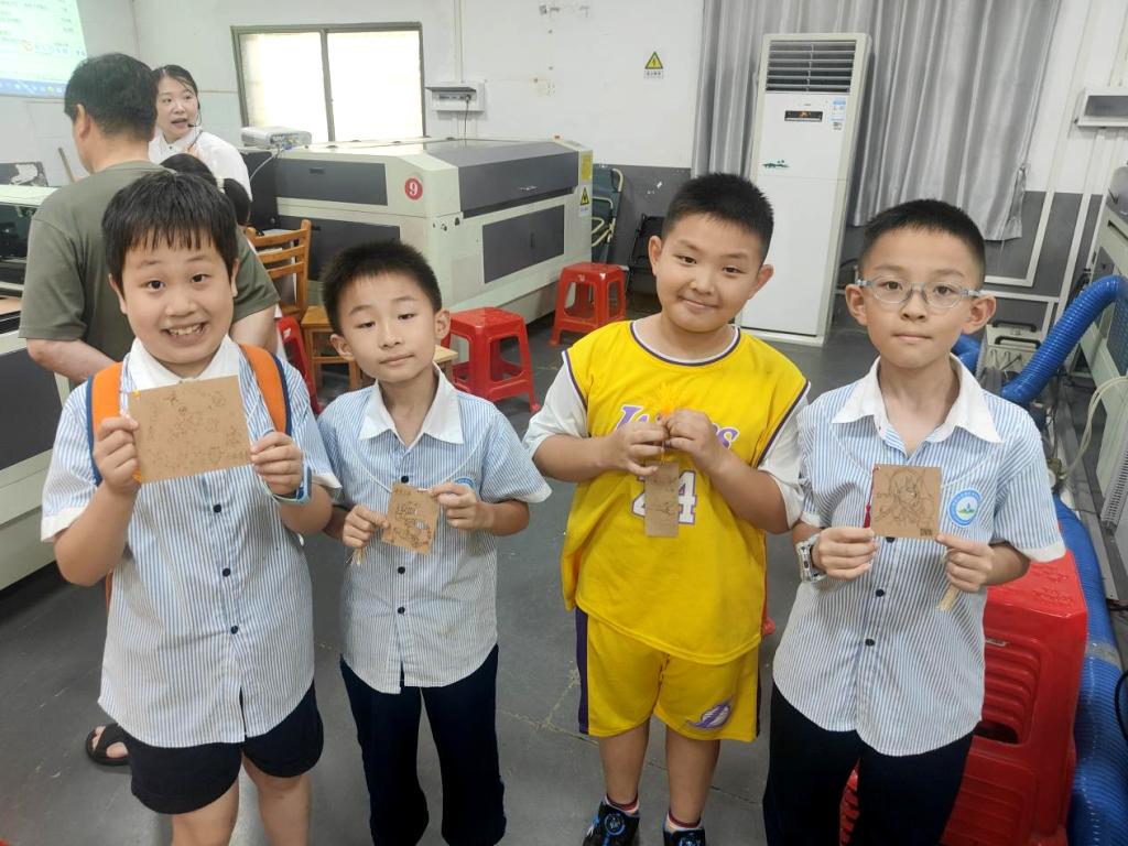 在科技制作体验环节,孩子们在实训老师的耐心指导下,亲自参与到3D打印和激光作品的制作中。他们认真地完成每个步骤,并就感兴趣的问题及时请教指导老师。随着一件件作品的顺利完成,孩子们一个个心满意足,既见识了智能制造的磅礴之力,又拥有了亲手制作的成果。“在本次研学活动中,我感受到了科学技术的无穷魅力,我将更加努力学习,长大以后为建设国家贡献力量”,员工代表谭皓宸说。