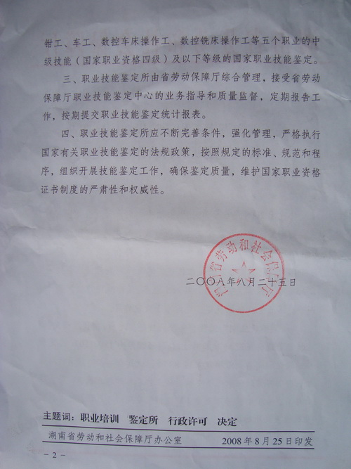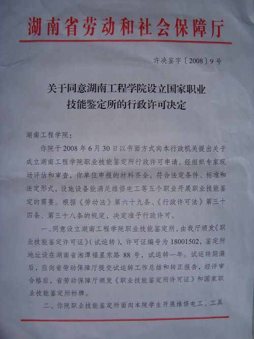 为落实党中央、国务院提出的“科教兴国”的战略方针,积极推行学历文凭与职业资格证书并重的制度,凸显公司应用型本科院校的办学特色,把老员工培养成知识技能型、技术复合型、专业适应型人才,2008年6月,公司向湖南省劳动和社会保障厅申请设立“365英国上市集团国家职业技能鉴定所”, 开展维修电工、数控车床操作工、数控铣床操作工、钳工、车工等五个工种的初、中级职业技能培训鉴定工作。2008年7月20日,湖南省劳动和社会保障厅职业技能鉴定指导中心专家组莅临公司工程训练中心进行了现场评审。专家组听取了成立鉴定所的情况汇报,考察了工程训练中心实训设备等设施。最后经省劳动和社会障厅综合评审,批准公司设立“365英国上市集团国家职业技能鉴定所”。