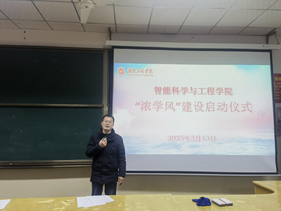 活动伊始,周老师对开学以来的员工工作进行简要总结,指出学风建设方面存在的问题。在学习经验分享环节,上学期期末成绩总分排名第一名的戴正意同学、英语四级考试第一名的廖柏华同学依次上台,分享他们在期末考试、英语四级备考等方面的学习经验。易佳运同学就“智言慧语”的学习体会进行发言,表达了对毛泽东同志的名句“为有牺牲多壮志,敢叫日月换新天”的深刻感悟。