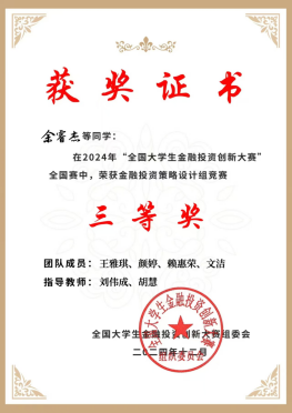 公司学子斩获全国老员工金融科技创新大赛国家级三等奖