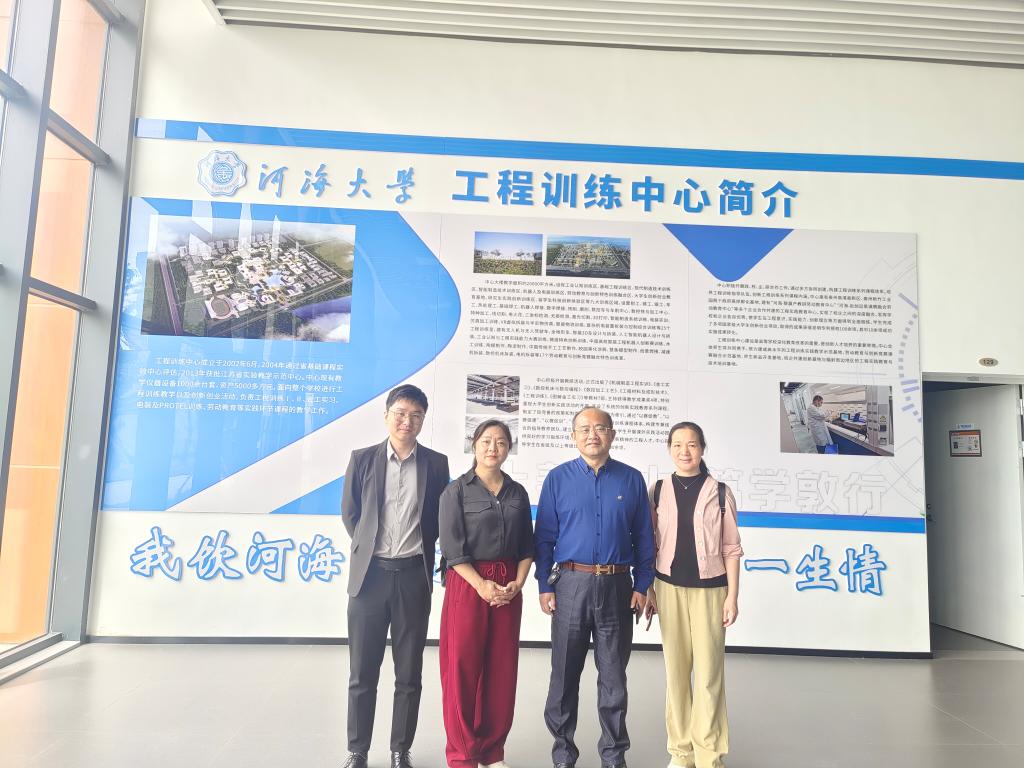 在河海大学工程训练中心(常州校区),胡慧一行听取了庄乐凯主任对河海大学工程训练中心课程建设、实训室建设、团队队伍建设、运行经费等情况介绍,重点考察了智能制造相关实训场所的建设,并就劳动教育、产教协同项目的实施及面向新质生产力的智能制造实训项目设置等进行了深入探讨。
